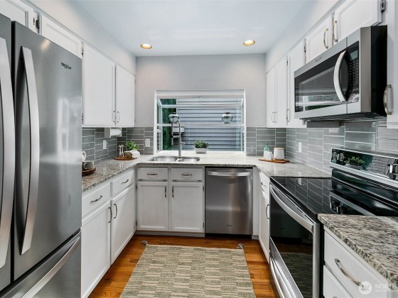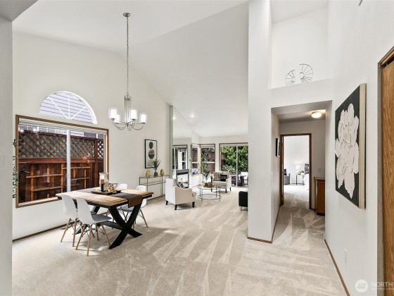 This beautifully maintained Springbrook Lane Rambler is a rare find! Move-in ready with fresh interior paint and new carpet throughout. Featuring sunny living & dining rooms with vaulted ceilings. Updated kitchen with hardwood floors, eating space & newer stainless steel appliances, including stove, dishwasher, fridge & microwave. Spacious primary bedroom with large closet & full en-suite bath. 2 additional bedrooms with plenty of storage. The large private backyard is perfect for entertaining, with garden lovingly curated by Sellers. Quiet setting but is just minutes from Juanita Beach, Totem Lake, and I-405 for an easy commute. Not to miss!