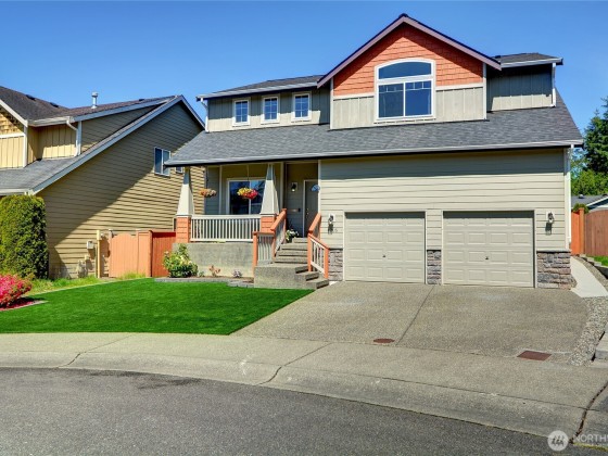 Stunning one-owner 5 bdrm, turnkey home in sought-after Mill Creek neighborhood. Gorgeous living rm w/LVP flooring & vaulted ceilings in living & dining rms. Beautiful kitchen features Wolf oven/gas range, new refrigerator, trendstone counters & tons of storage. Open family rm with gas fireplace. Main floor bdrm. Primary suite has vaulted ceilings & light! Bath w/double sinks, separate shower, tub & huge walk-in closet w/organizer. 3 other bdrms upstairs are good size, 2 w/walk-ins. 2-car garage w/273 sq. ft. of loft storage! Low-maintenance fully fenced yard with turf front, fantastic patio & deck in back. Siding, roof, furnace, appliances, fence & flooring all updated! Close to schools, shopping & easy freeway access.