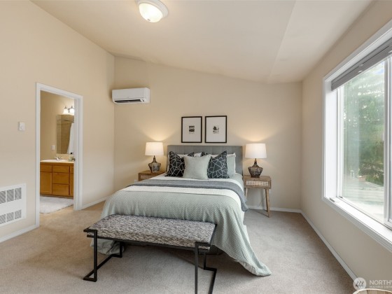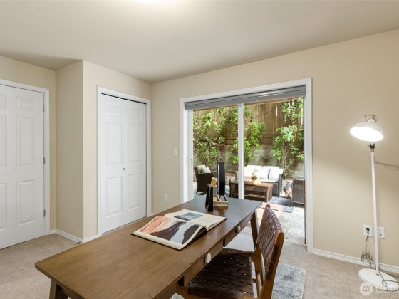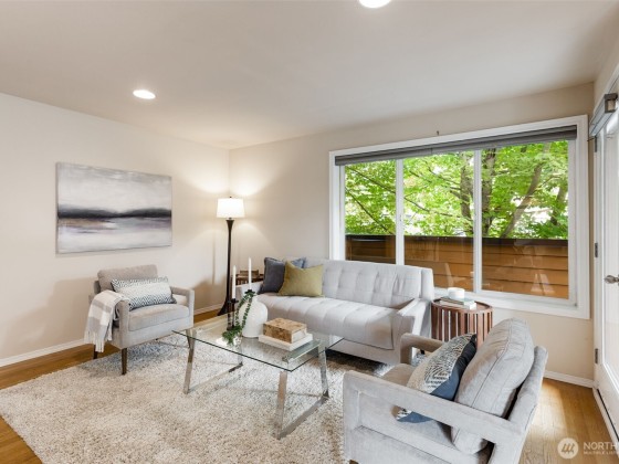 SELLER OFFERING 4.99% RATE LOCK!! Light-filled end unit w/ NO HODs in desirable Broadview neighborhood! Views of gorgeous Maple trees out front; bright, open & very spacious layout w/ gas fireplace, modern kitchen w/ gas range, slab counters & hw floors. Two upstairs bedrooms include a vaulted primary suite w/ private deck; lower level offers a 3rd BR/office plus full bath & garden patio access. AC (heat pump) on both upper levels, on-demand H20, new carpet & paint. Decks are also new & warrantied! Bonus 1-car garage w/ storage space + 1 off-street parking spot. Centrally located for an easy commute, great shopping options (Trader Joes, QFC), restaurants & more. Plus just minutes from coffee at Diva Espresso & sunsets at Carkeek Park!