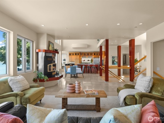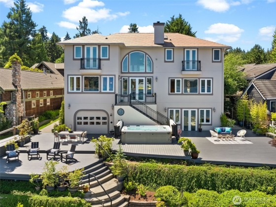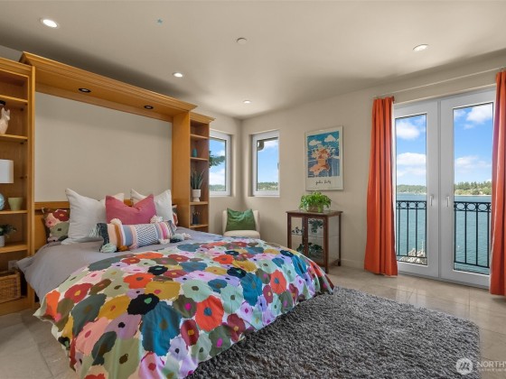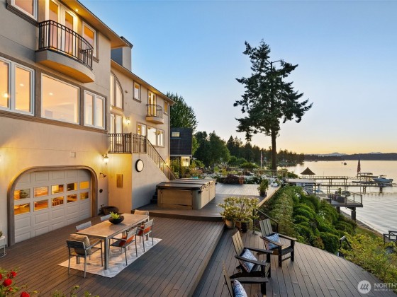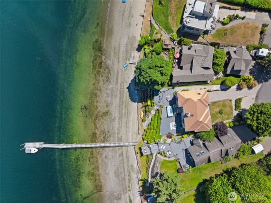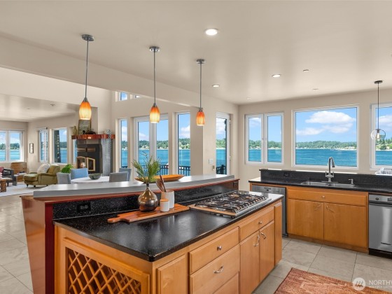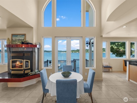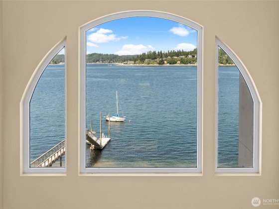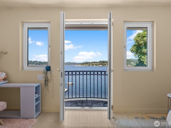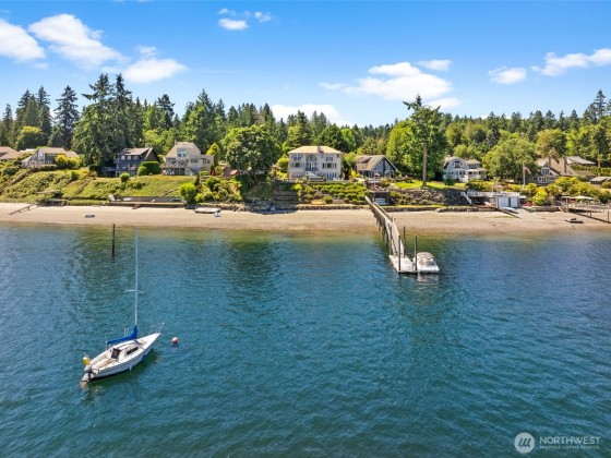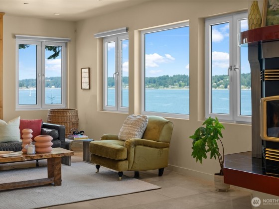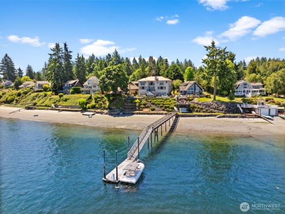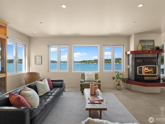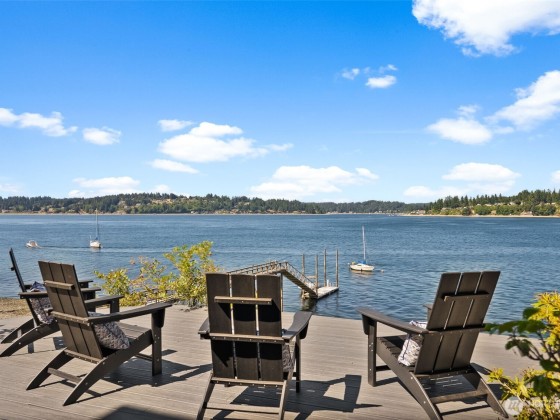 Where loft style meets the waterfront—this standout Fox Island retreat blends industrial-chic with Mediterranean warmth. Located in the Peninsula School District & only 15 min to Gig Harbor amenities you benefit from peace and quiet + 180 degree views of both sunrise and sunsets. 82 feet of waterfront, moorage, a shared dock & a buoy. Inside, heated travertine floors, soaring ceilings, and a light-filled open layout set the tone. With 3 beds, 3.5 baths, an office, den, & bonus room with 3/4 bath, there’s room to live, work, hosts guests & recharge. A 2,000 sq ft TimberTech deck, 14-ft swim spa, European casement windows, & metal roof bring modern, low-maintenance luxury. End-of-cul-de-sac with room to play and plenty of parking.