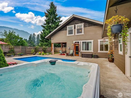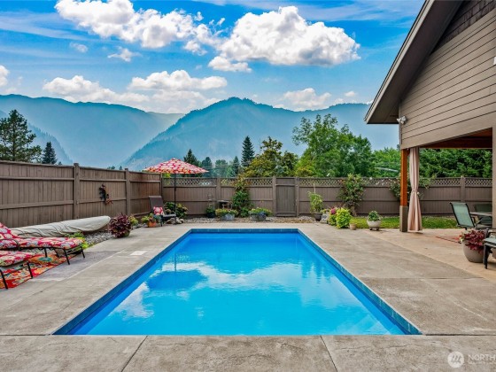 Just off the beaten path and close to everything Leavenworth offers, this peaceful retreat gives you room to relax and recharge. The main home offers 4 bedrooms (primary suite on the main floor) and 4 additional rooms that flex for hobbies, fitness, work, or guests. Cozy up by fireplaces in winter or enjoy the pool, hot tub, and mountain views all summer. A charming 1906 1bed/1bath ADU adds space for extended living or rental income. Every detail reflects warmth, comfort, and livability. No HOA, just space, serenity, and smart design.