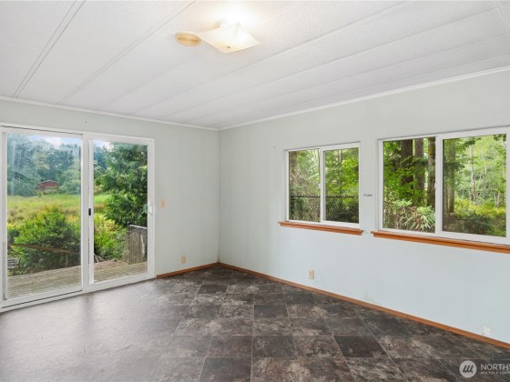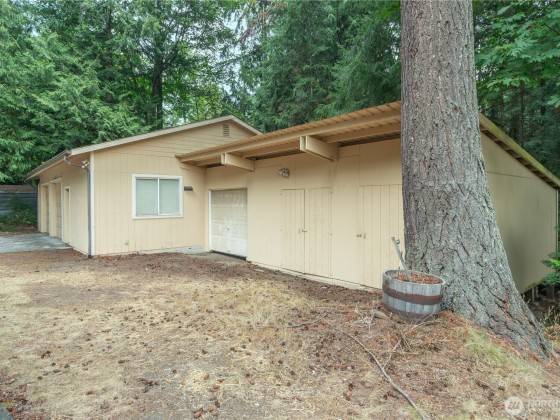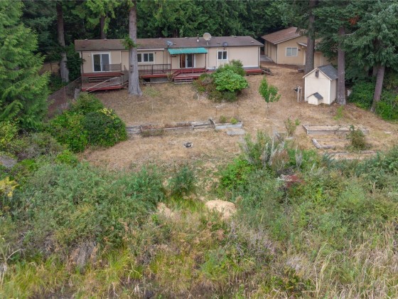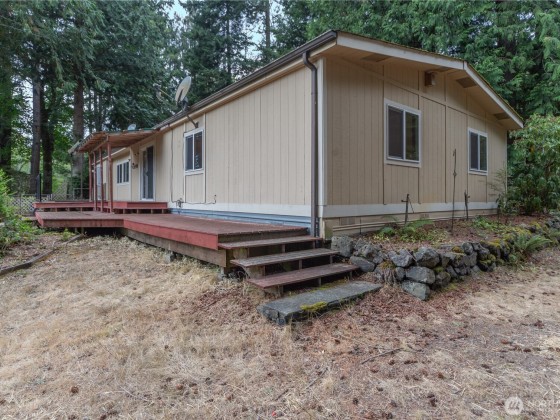 CALLING ALL INVESTORS, BUILDERS AND HOUSE FLIPPERS! The value here is in the land and outbuildings! The double-wide manufactured home is in need of repair; however, the detached 2-bay garage with workspace and storage shed will provide you with a good start! The garage has an RV power hookup so you could live on the property while you fix up the existing home or demo and build your own! There is also a metal carport to store your boat or ATVs that you could use to explore the 5 acres! The house is on a gravity septic system and has its own private well. Close to shopping, Highways 104 and 307, The Point Casino and Hotel, and only 11 minutes to the Kingston Ferry Terminal. Being sold as is!