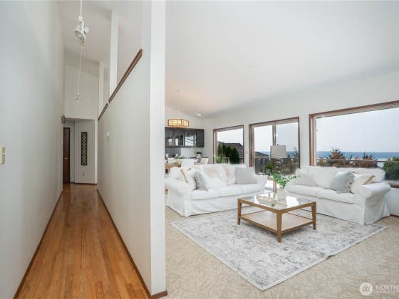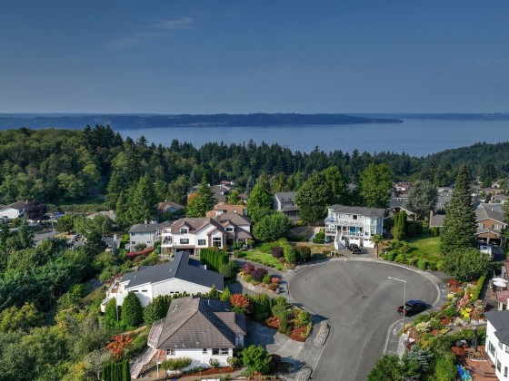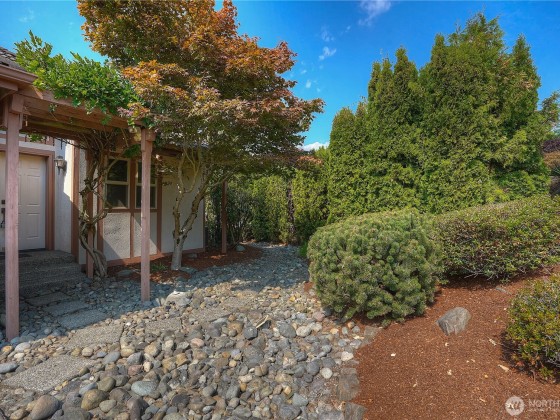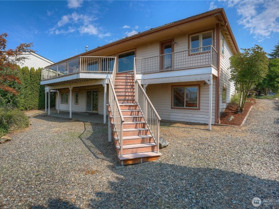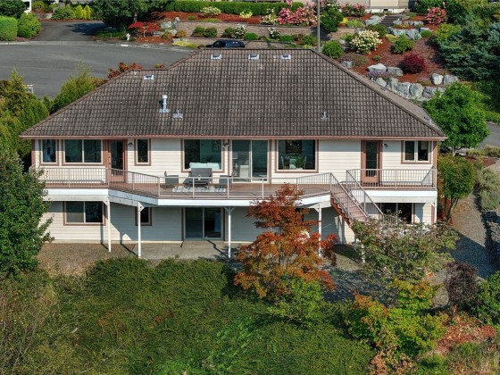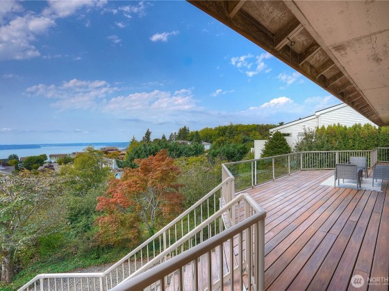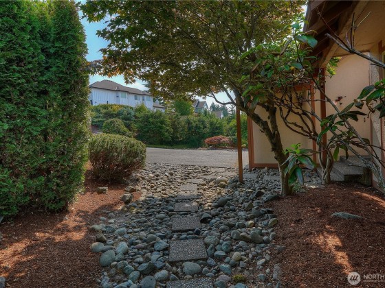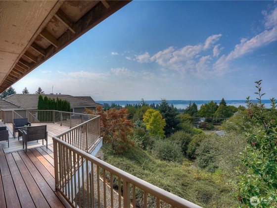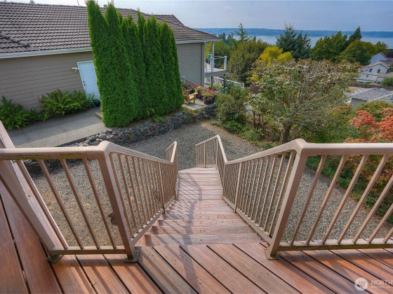 Let the tranquility of the Japanese garden embrace you & prepare you to enter a home designed to share the beauty of the western views. Stepping from the foyer you move into the light filled living space with vaulted ceilings & a front seat to sunsets over Commencement Bay & the Olympics. Step out to the large deck to enjoy morning coffee or a glass of wine after dinner. Meal prep & cookie making is fun in the kitchen with lots of cabinets. Spacious primary suite w/bath on main floor. Room for office or art on main. Downstairs are 3 additional bedrms & full bath plus family rm w/patio & views, too!. This lower level could be a separate living space! Create the backyard you want by terracing, adding a sports court, garden space, play space!