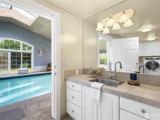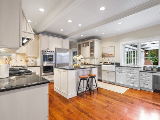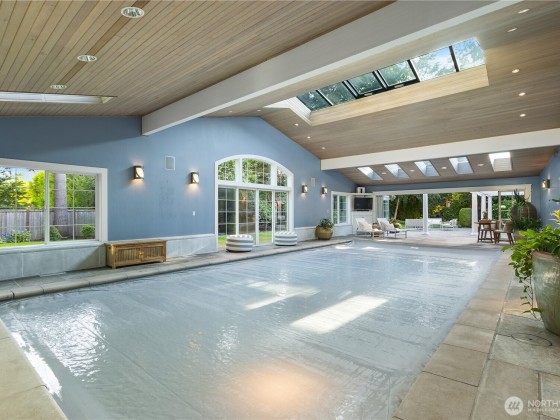 Experience timeless elegance & resort-style living in this exceptional Cape Cod-style home, set on a lushly landscaped private lot steps from Medina Beach, schools, post office & Kitchen and Market. Storybook charm blends w/ high-end features including private main-floor primary & indoor heated pool bathed in natural light from skylights & retractable glass doors that open to the serene outdoors. Entertain in the elegant living/dining areas or gather in the gourmet kitchen which flows effortlessly to expansive Pennsylvania Bluestone patios. Spacious flat yard offers a tranquil retreat w/ a peaceful pond & waterfall & mature landscaping. Located in the heart of Medina, this home captures the very best of timeless style & modern convenience.