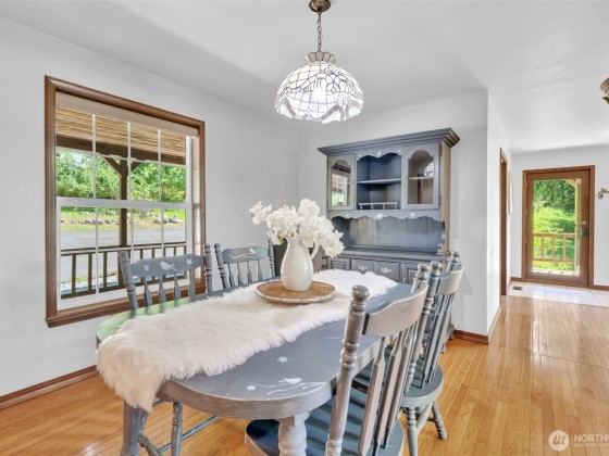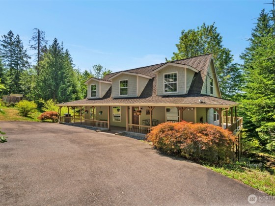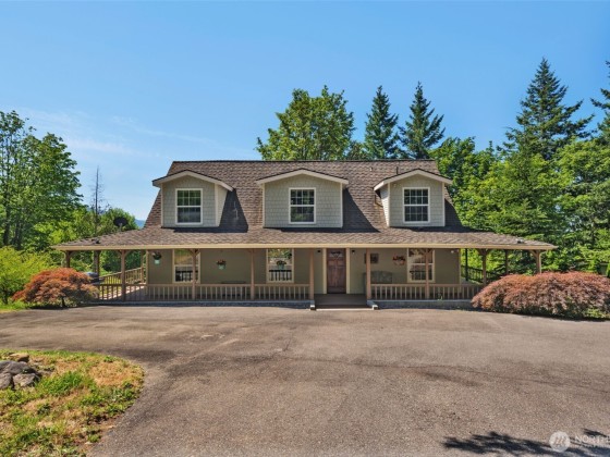 [HOMESTEADERS DREAM] - Custom built iconic farmhouse curb appeal w/ high peaks & wrap around porch transporting you to a simpler time. No detail overlooked in this forever home. Vaulted ceilings, wall of windows immersing you in nature, formal dining room & adorable breakfast nook, eat-in kitchen w/ walk-in pantry, primary on main w/ en suite, large back deck, inviting loft w/ 2 more bdrms, bath, & second living area. Finished daylight basement w/ separate entrance, kitchen, living room, full bath & 2 more rooms. (Perfect for MIL, ADU, or rental income). Home is nestled on gorgeous 5-acres w/ a shop, apples trees, blueberries, chickens, ducks & bunnies. Neighboring forestry land means endless trails in your backyard. Come find your oasis!