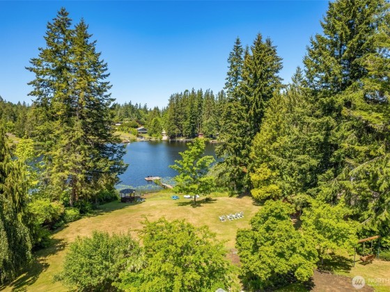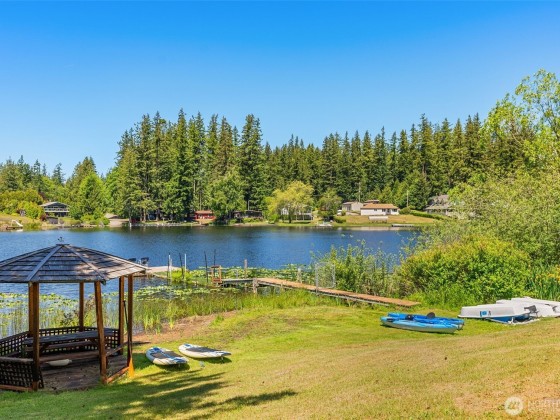 New price! Charming remodeled lakehouse on quiet Lake Martha, great for swimming (no gas motors), and year-round fishing from your own private dock. The house is set on a huge double lot w/ mature landscaping, fruit trees, offering a serene backyard oasis where you can relax, watch eagles, bunnies, & ducks. Enjoy beautiful sunsets on your covered patio or gather around the firepit. The inside has been extensively remodeled: new plumbing, electrical, HVAC, septic, flooring, new insulation, A/C, and a gorgeous kitchen. Detached 2-car garage with EV charger, and there's also a detached Shop. Enjoy Locals Coffee & Paddle Pub down the street. Easy access to I-5 and Lakewood shops - Target /Costco. Start making memories on the lake!