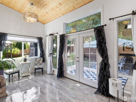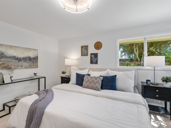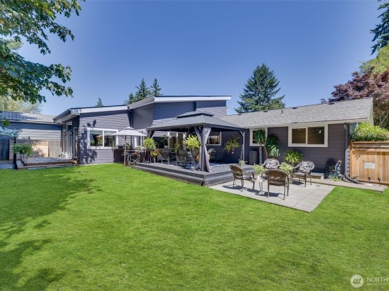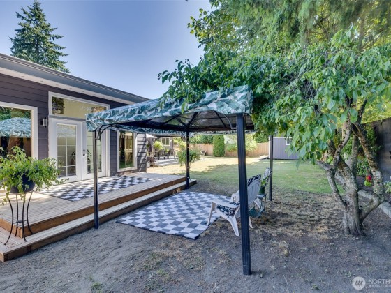 Tucked at the end of a quiet cul-de-sac, this beautifully renovated rambler offers rare flexibility & charm. With 3 bedrooms, 3 full baths, and a full second kitchen, it’s perfect for multigenerational living or income potential—rent one side and live in the other! The main home features 2 beds, 2 baths, spacious primary suite has a jetted tub & walk-in closet. Nice updated kitchen. Studio suite is loaded with charm! Steam sauna and bidet in bathroom! New kitchen! Enjoy privacy in the fenced backyard with afternoon shade, an Italian plum tree, covered patio, and shed. Attached garage, heat pump w/AC, & extra space upstairs for an office or storage. Large driveway, over a 1/4 acre lot, potential for a detached ADU. Easy access to I-5 & 405!