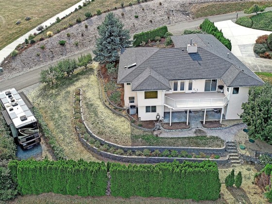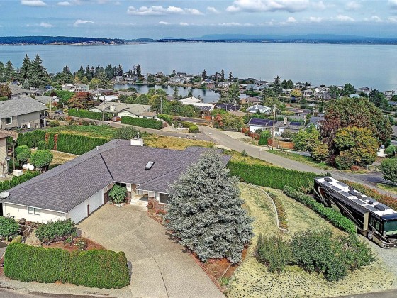 Wake up to breathtaking mountain and water views in this inviting 3-bedroom home. The spacious primary suite features a relaxing 5-piece bath, while the upgraded kitchen with stainless steel appliances makes everyday living a joy. Step onto the back deck to sip your morning coffee or gather with friends as the sun sets. The yard is filled with fruit trees and grape vines, plus RV parking for all your adventures. A roughed-in basement is ready for your ideas, and modern comforts include a heat pump for year-round efficiency and a generator for peace of mind. As part of the country club, enjoy access to three private beaches—perfect for swimming, strolling, or simply unwinding.