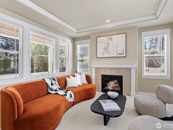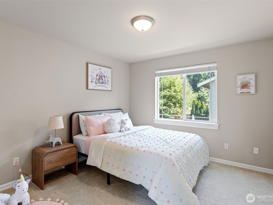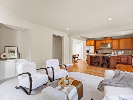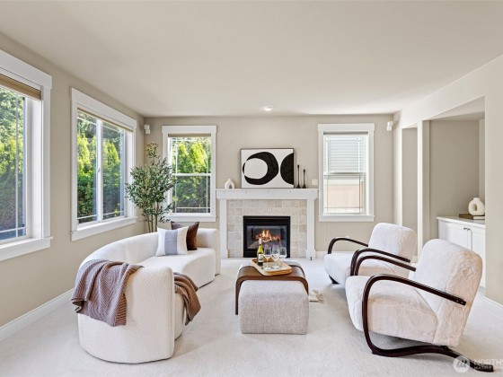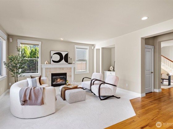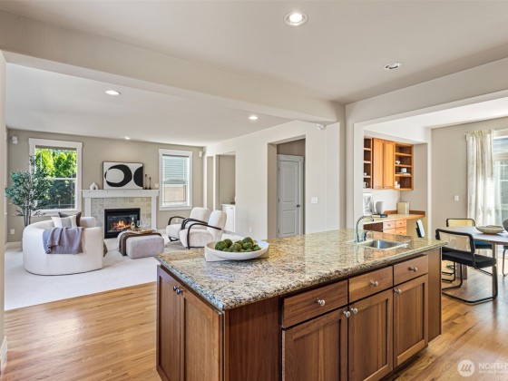 Gorgeous 3250 sq ft, 4bd/2.5ba 2-story home in Saddlecrest neighborhood. Kitchen boasts HW floors, cherry cabinets, SS appliances w/5-burner gas range, huge island w/brkfst bar/2nd sink, granite slab counters & brkfst nook. Family rm has gas FP, surround sound & new carpet. Living rm features tray ceiling, new carpet & FP w/tile surround. Large office w/french doors, elegant dining rm leading to private patio & powder rm complete the main. 4 sizable bdrms upstairs incl. stunning primary suite featuring new LVP floor, 5-piece ensuite w/tile shower surround, soaking tub & 2 walk-in closets. Utility rm & full guest bath w/dbl vanity finish 2nd floor. 3-car garage, walk to Bellevue Schools, just mins to 405/520, dining, shopping, parks & more!