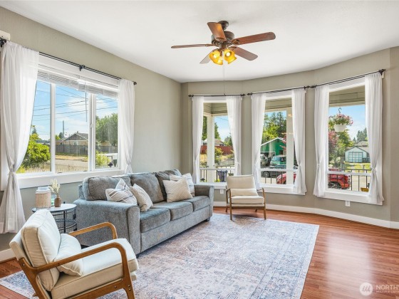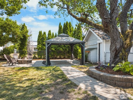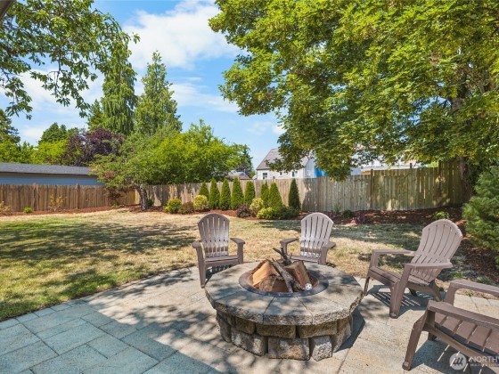 Beautifully updated 5-bed, 2.5-bath home on a fenced lot. Main floor features spacious living and dining areas, updated kitchen with quartz countertops and ample storage, and a convenient primary suite with private bath. Four additional bedrooms and full bath upstairs provide flexibility for guests, work-from-home, or hobbies. Recent upgrades include new flooring, newer roof, updated plumbing and electrical. Partially finished basement adds extra storage or bonus space. Enjoy outdoor living with a deck, yard, and covered paver patio with fireplace and detached garage. Close to I-5, schools, parks, and amenities.
