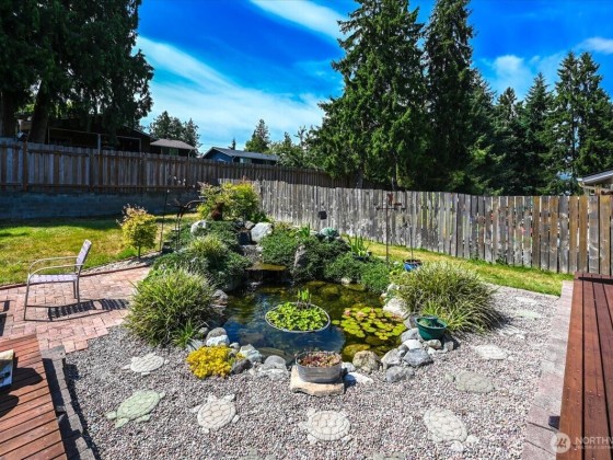 Quiet Mount Vernon Neighborhood. Step inside this fully updated interior with beautiful finishes throughout. The kitchen boasts granite countertops, a copper Farmhouse sink, black stainless steel appliances, gas range, and upgraded cabinets. The large primary suite offers a walk-in closet and ¾ bath, complemented by a second en-suite with ¾ bath and a full hall bath. Spacious bedrooms, updated doors and trim, recessed lighting, and custom WinSharp blinds complete the modern feel. Outside, enjoy the level front yard or step out back to the backyard oasis with a deck, brick patio, koi pond with waterfall, and a shed—perfect for relaxing or entertaining. New roof, gutters, and blown-in insulation in walls and attic add comfort and efficiency.