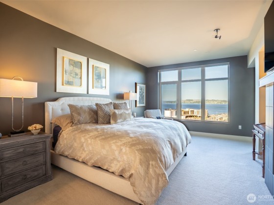 Stunning home in the gated Commencement Condos community. This home features panoramic floor-to-ceiling windows showcasing views of Commencement Bay & the mountains with partially transparent shades that block the sun, but not the view. Gorgeous kitchen boasts granite counter tops, Sub-Zero fridge, Thermador gas cooktop, Bosch dishwasher & 120-bottle wine cooler. Luxurious primary suite boasts remote-control blackout shades, 2-sided gas fireplace, spa bath with soaking tub & huge custom closet. 2 designated garage parking spaces + storage unit. Community offers video surveillance, fitness center, clubhouse (available for functions/meetings), large patio with BBQ, & game room/library. Excellent location near Pt. Ruston & Pt. Defiance Park