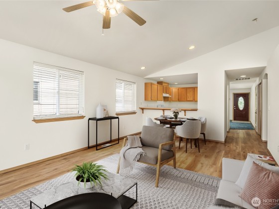 Super clean single-level home with updated roof, leaf filter gutters, fresh interior paint, and new LVP flooring. Efficient gas furnace with AC and new hot water heater. Functional layout offers 3 bedrooms, 2 baths, and two living areas, including an ADA-updated main bath. Spacious primary suite features walk-in closet and full bath with jetted tub. Move-in ready with fully insulated, finished garage. Light-filled living room with cozy gas fireplace opens to a well-appointed kitchen. Level lot with low-maintenance yard backs to a peaceful community park. Quiet, walkable neighborhood with pride of ownership. 2-car garage and thoughtful upgrades make this a smart, stylish choice.