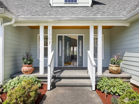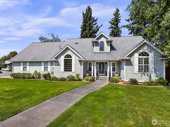 Gorgeous custom-built home w/great floor plan on a big corner lot.Greeted w/soaring ceilings,grand main living room w/river rock fireplace,french doors lead into the beautiful kitchen w/custom cabinetry, granite counters,new glass backsplash & breakfast nook.Formal dining room,spacious laundry room w/half bath.Elegant primary suite w/walk in shower, jetted tub & walk-in closet.Two nice bedrooms on the other side of the home share a really nice full bath & privacy, new carpets. Awesome flex room over the garage.Incredible backyard includes mature landscaping,large covered patio, hot tub, two sheds & dog run area. Nice garage w/custom cabinetry & benches. All this in a really nice neighborhood close to schools, parks. MINUTES TO BELLINGHAM