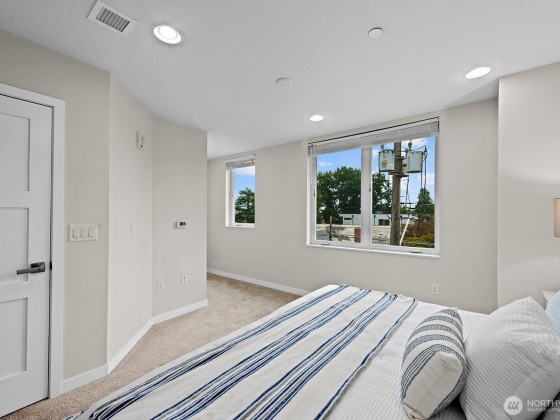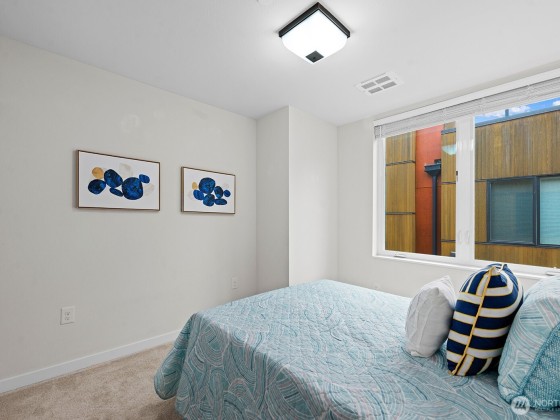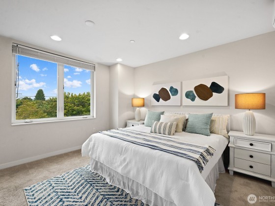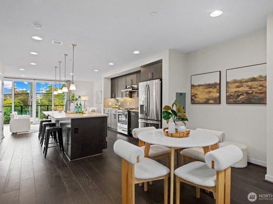 Welcome to Bryant Heights/Luxe 36. Sophisticated Urban Living at it's best w/no rental cap. Beautifully appointed home--light-filled two-story townhome blends modern elegance w/city convenience. Quaint courtyard leading to front door, a classy & elegant feel. Enjoy designer finishes throughout--gourmet kitchen, spa-inspired baths. The open-concept&expansive main level w/hard surface flooring & prvt deck-perfect for entertaining. Private rooftop patio w/gorgeous city views & perfect place to relax. A/C, double wall construction. Pet's ok, some minor restrictions-see resale. Utilities included in HOA dues. EZ access to parks, U Village, UW, Children’s Hosp., light rail, w/walkable restaurants, coffee shops etc.., perfectly for work&play.