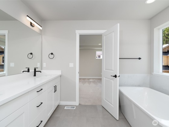 Welcome to Sather Farms conveniently located in Smokey Point. The Marietta, lot 36, offers a 2,123 square foot plan with 4 beds and 2.5 baths. Main floor features open kitchen, dining, family room with gas fireplace and pocket office. The second floor features bedrooms, laundry and spacious primary bedroom with ensuite bathroom and walk-in closet. Quality finishes include white cabinetry, stainless steel appliances, quartz counters, Deako smart switches, heat pump (providing A/C), landscaping, fencing & more! This floor plan lives large! Site Registration Policy - Buyers must register their Broker on first visit and bring Broker on future visits. Pictures are of home in another community with same floorplan.