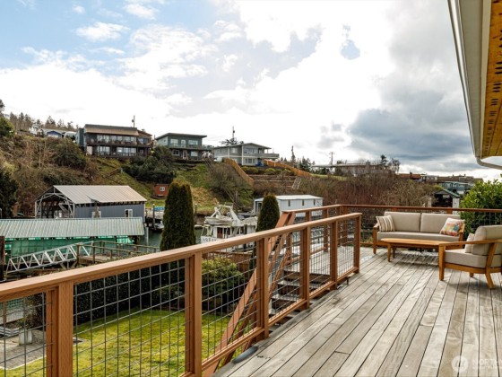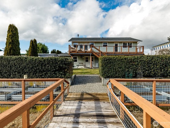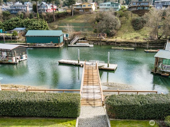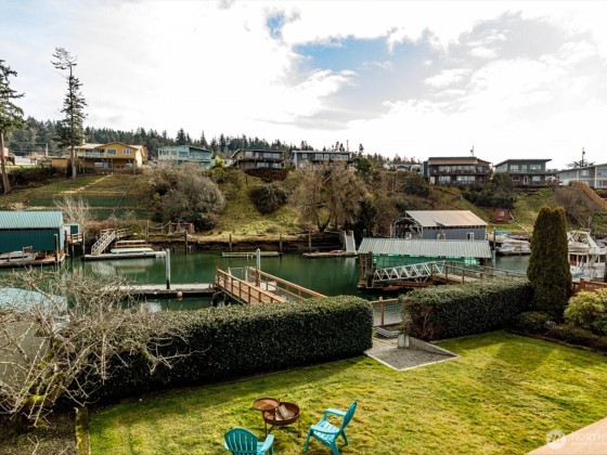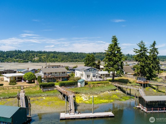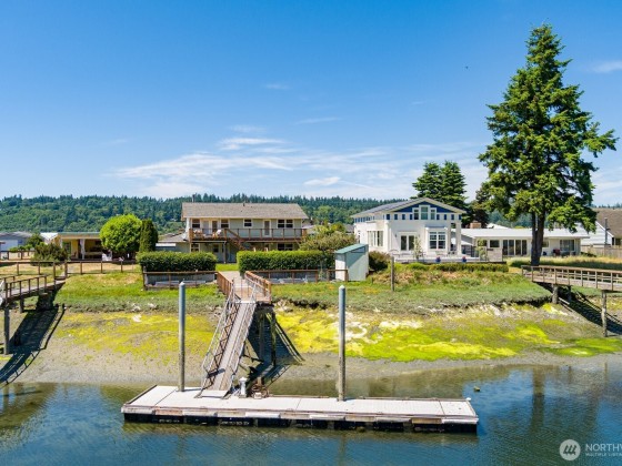 Embrace the ultimate waterfront lifestyle with this beautiful craftsman home, complete with a ~50 ft dock equipped with water and power, perfect for boating, fishing, and crabbing adventures. Thoughtfully designed for comfort & function, the home boasts Brazilian cherry wood floors, custom kitchen cabinetry, a 36-inch range with hood, and freshly updated interiors with new carpet, fixtures, & paint. The lower level offers a cozy propane fireplace, wet bar, & full bath, creating a welcoming retreat. Step outside to enjoy ironwood decks, a large patio, & fully irrigated landscaping w/raised garden beds. With an oversized two-stall garage, heated shop, whole-home generator, and dock, this home is a rare waterfront opportunity.