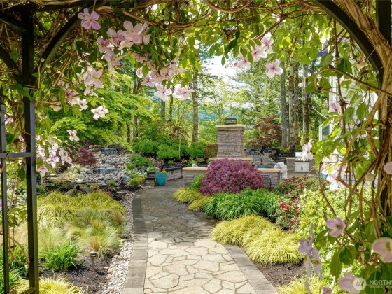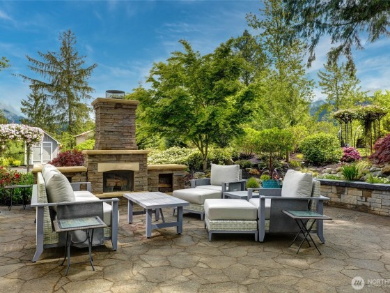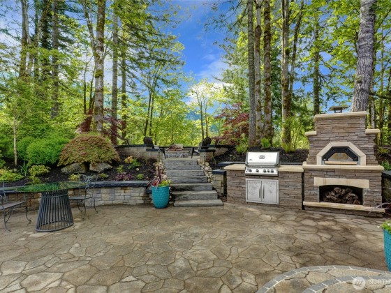 NOTE: Previously under contract twice! Both Buyers pulled before inspection due to there own personal issues UNRELATED to the home and property. NOW IS YOUR CHANCE! Exceptional interiors include, wainscoting, crown molding, Santos Mahogany flooring all beginning at the grand entry w/dramatic staircase. Incredible European Kitchen w/high end stainless appliances (Miele Commercial Range). Richly romantic Master Suite w/fireplace, sitting area & spacious 5 piece marble bath. 3 spacious additional bedrooms & Guest Suite w/ 3/4 bath. Entertain overlooking the River below on 2 different level patios ~ featuring a firepit, bubbling water-feature, Built in stone fireplace & Pizza Oven create the ultimate entertainment space. A must see PNW home