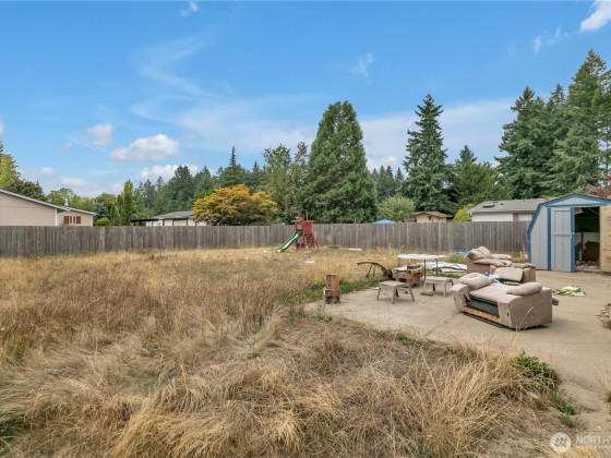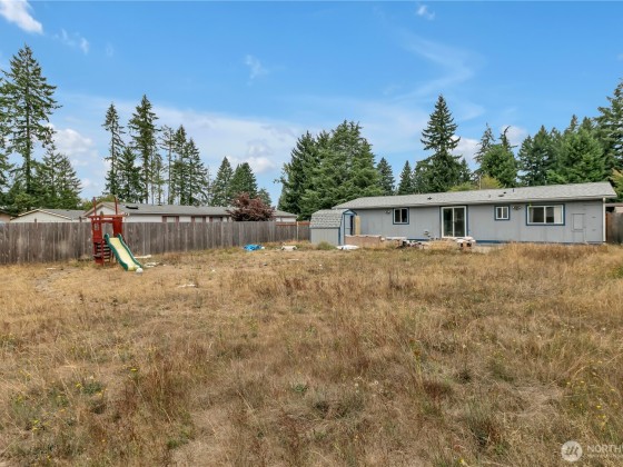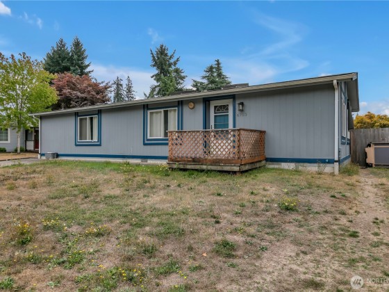 FIXER! 2 bedroom 2 bath single level home. Spacious living & family rooms allow for a functional layout and plenty of natural light. Oversized primary bedroom with private bathroom. All bedrooms are a great size. Large utility room with full bath leads out to a fully-fenced backyard! Approx. 30 minutes to/from JBLM with easy access to I-5. Minutes to shopping, theaters, and restaurants. House needs TLC, book your appt today!