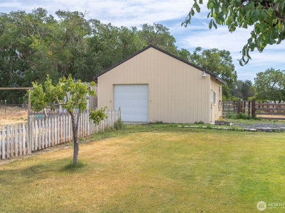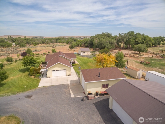 Immaculate 7-acre equestrian property with 2 tax parcels. Fully fenced and cross-fenced with barn boasting hay + tack storage. Ideal horses or hobby farm. Multiple shops all with power, and one with a wood stove for comfort. Additional outbuildings with secured parking, storage, and workspace. The well-maintained light-filled rambler features vaulted ceilings, skylights, and expansive windows that bring the outdoors in. Primary suite with walk-in closet. New heat pump with central air and cooling, along with new vinyl windows and gutters. Incredible 50 gpm well for domestic and irrigation needs. A backup propane fireplace is available for when the electricity goes out. Amazing recreation nearby, including fishing, hunting, and boating.