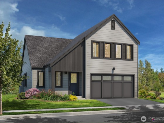 The Villages of Garrison Creek is proud to WELCOME Mill Creek Homes to the neighborhood...Fresh new design, Modern Craftsman, 1740 sq ft, 3 bed,2.5 bath. Main floor living, with 2 bedrooms, loft and 1 bath upper. Entry foyer leads to welcoming kitchen with large quartz island, custom Huntwood ® cabinets, stainless profile range, microwave, dishwasher & 30" designer hood. Dining room features vaulted ceiling, living room electric fireplace, mantel & rock surround. BBQ or enjoy a glass of wine on covered patio. Wood wrapped windows on main floor. Enjoy the easy care luxury vinyl plank flooring, bedrooms the warmth & comfort of carpet. Home is landscaped and fenced.Plumbed for solar,& water softener loop. Wired for EV. Completion late summer.