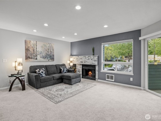 Welcome to this luxurious condo at the sought-after Spyglass Condominiums in downtown Des Moines! Just minutes to the marina, restaurants, and shops, this 2-bedroom home features a fully updated kitchen and bath, cozy wood-burning fireplace, and a covered balcony perfect for relaxing or summer BBQs. Enjoy in-unit laundry, secured entry, two designated covered parking spaces, plus extra storage. Peaceful setting within walking distance to the waterfront—this move-in ready condo has it all!
