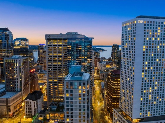 Designer remodel -Luxury living high atop World Class Hyatt Hotel Olive 8! Expansive city views, abundant light, floor-to-ceiling windows, 10ft ceilings. New 2023 finishes: wide plank oak hardwoods spanning living & bedroom- New Pedinin kitchen cabinets, new SS appliances, new Kitchen island with white quartz, new glass tile back splash,new faucet, sink & garbage disposal. Brilliant design with fireplace & spacious balcony. 5 star amenities! hotel access floor 2-Saline pool, Jacuzzi, steam & sauna, fitness center & yoga studio. 18th fl- Private owners lounge- roof deck & dog run. Ez access to light rail, I-5, mins to Amazon, vibrant location. Hotel discounts for family friends. 1pk,1stg A/C,No rent Cap.