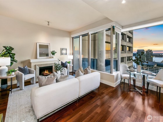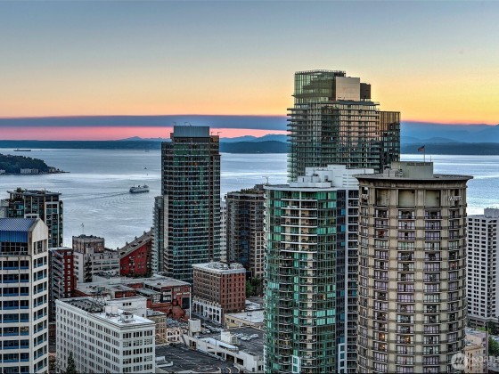 Welcome to Olive 8-HYATT hotel living, Indulge spectacular Western views of Puget Sound, City skyline & Olympic mountain. 37th floor! Modern open floor plan- no load bearing column to block your view- 10ft floor-to-ceiling windows. This Lux condo features, A/C, gas cooking, rich hardwood floors, private balcony. Enjoy exclusive resident amenities including 24/7 concierge, lounges, rooftop BBQ deck, game room & pet area. Optional hotel amenities available for monthly $85 subscription - saline lap pool, Jacuzzi,fitness center, yoga studio spa, sauna, &valet parking. Includes 1 parking space & storage. Near light rail , Amazon, I5, Swedish & Virginia Mason hospitals. Great place to hang your hat for those on the back to office downtown.