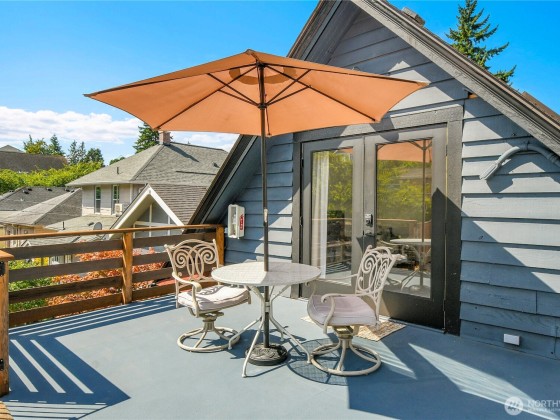 Historic Queen Anne duplex with modern renovations & DADU potential-- Sophisticated charm throughout, 2022 renovation of the owner’s suite shines with espresso-stained oak hardwoods & stylish finishes. Formal living, spacious dining & a quartz kitchen w/5-burner gas range & in-unit laundry. 2 bedrooms share a tiled three-quarter bath. The upper unit, remodeled in 2016, features a large deck, 1 bedroom, full bath, chic kitchen, abundant storage & in-unit laundry. Basement storage, alley access to 3 car off-street parking, all on a 3,600± sq ft lot with DADU potential add versatility. Just blocks from Coe, Ken’s & Macrina’s—an ideal opportunity for first-time buyers or owner-occupant investors in a premier Queen Anne location.