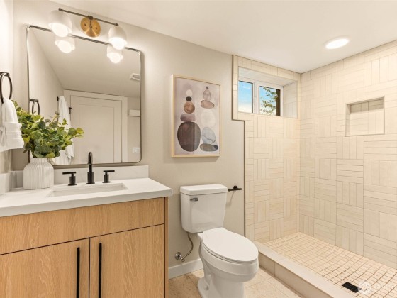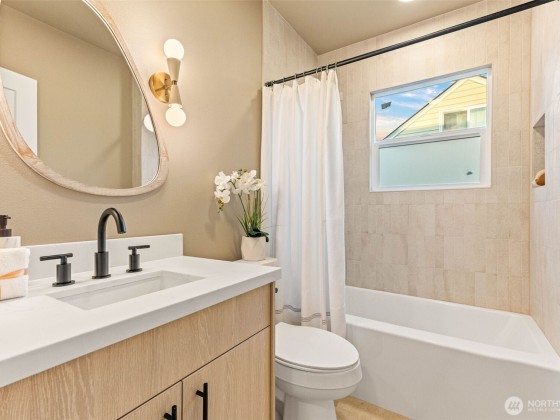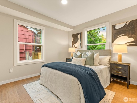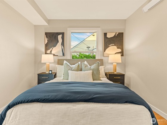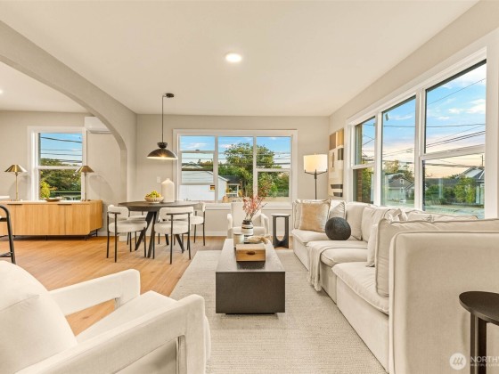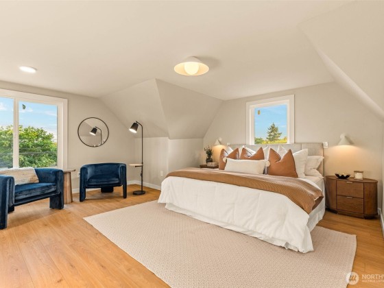 An exceptional brick Tudor, this home is a true masterpiece- where architectural artistry meets modern comfort. Sharp lines, striking black-framed windows, and timeless brickwork create a curb appeal that’s unmatched, appealing to those who value charm and character as much as livability. The primary suite crowns the entire top floor, offering an expansive view of downtown Seattle, walk-in closet and a massive five-piece en-suite bath. Efficiency meets elegance with brand-new windows, ductless mini-splits, and gas service throughout, blending classic character with modern refinement. Enjoy unmatched walkability from a quiet street, along with the convenience of an attached garage plus driveway parking. Fully fenced backyard!