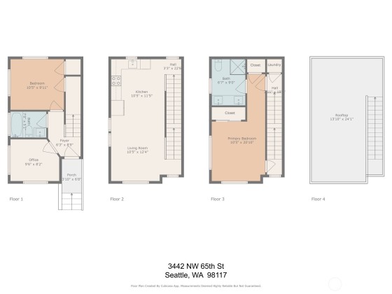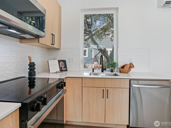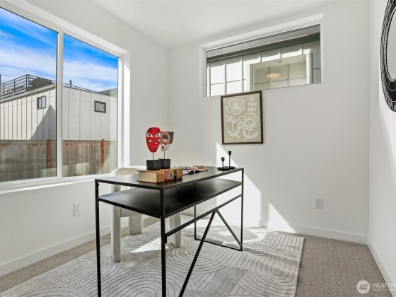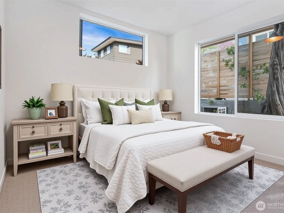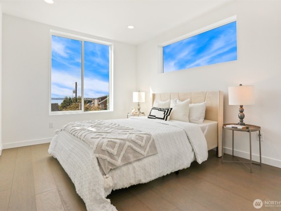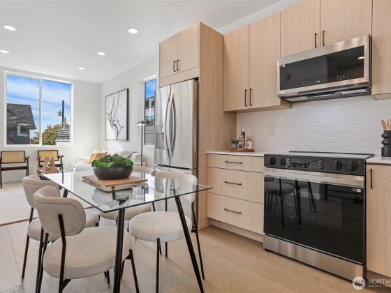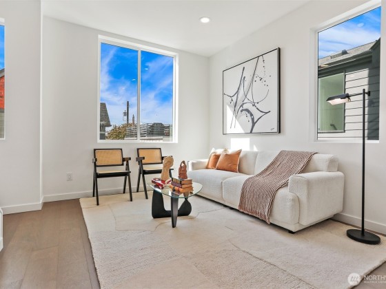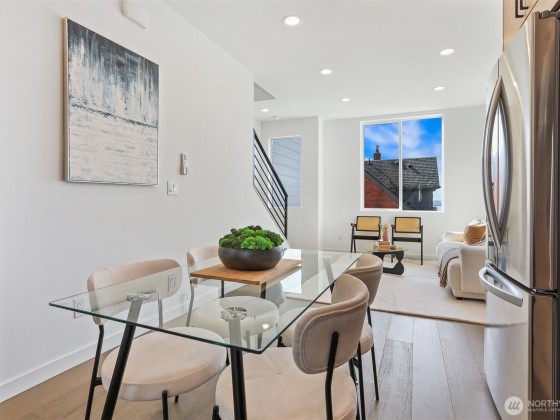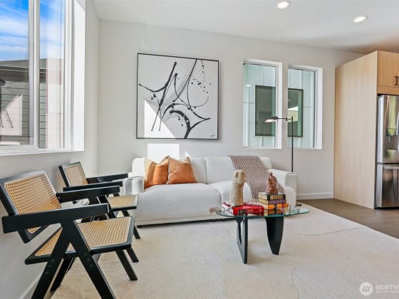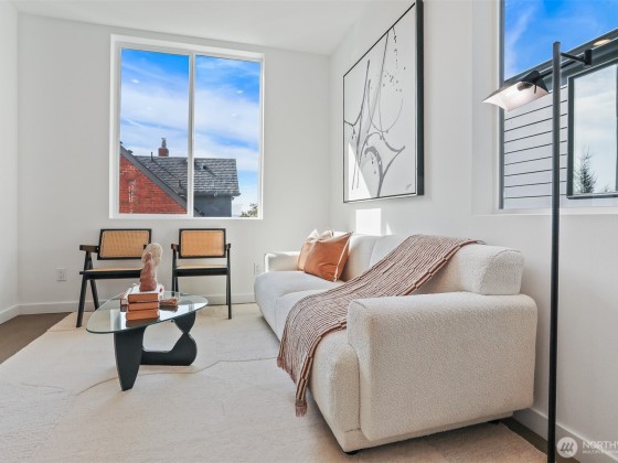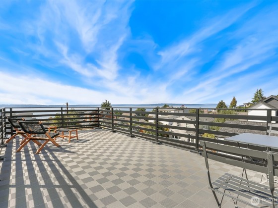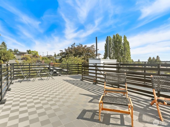 Very unique 6 unit project in one of North Seattle's most sought after neighborhoods; Sunset Hill. This unit has West facing windows that provide an abundance of natural light. 1st floor has a bedroom, den/office & a full bath. The 2nd floor has an open floor plan w/ high ceilings & large picture windows. The kitchen is well appointed w/ stainless steel appliances. 3rd floor has a spacious primary bedroom & 3/4 bath. The primary bedroom has views of the Sound/Olympic Mountains. This home has a large rooftop deck w/ stunning views of Rainier/Sound/Olympics. Fenced yard. 1 assigned off-street parking spot. Near Picolinos, Ray’s, Shilshole, Ballard Locks, Elks, Golden Garden, Sunset Park & much more.