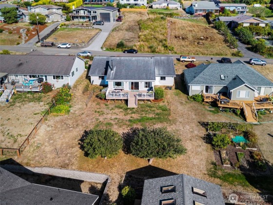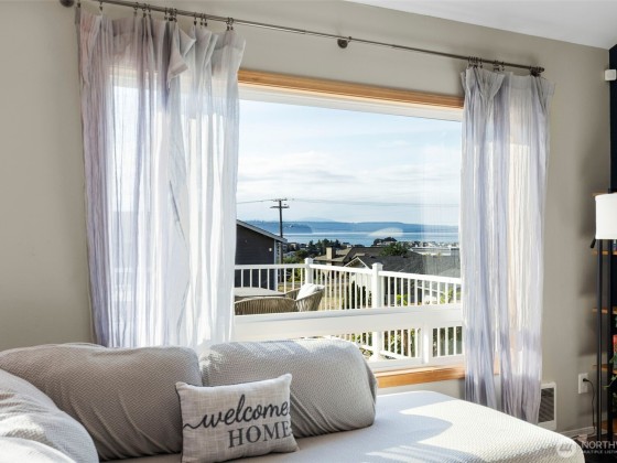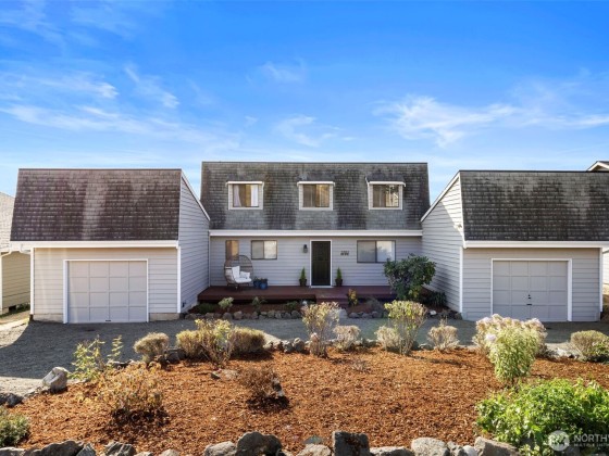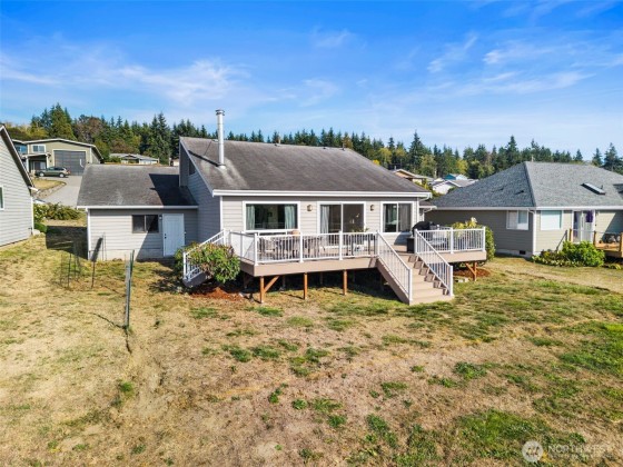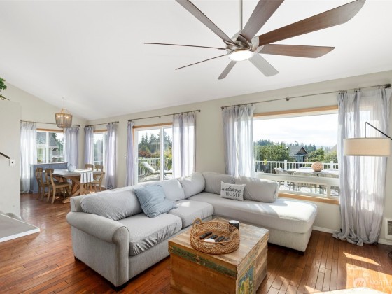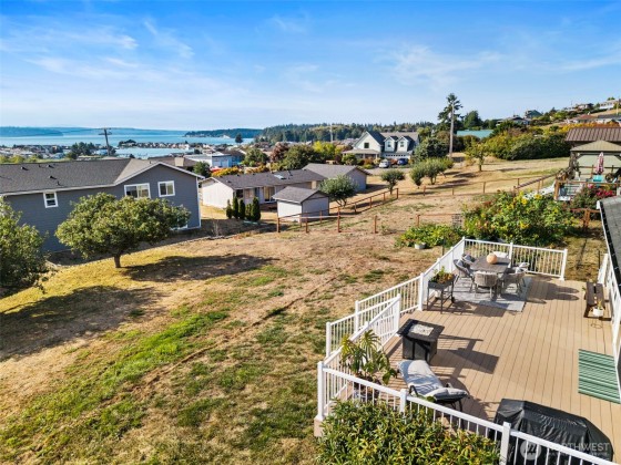 Enjoy the stunning Hood Canal and Olympic Mountain views from this charming Driftwood Keys home. Light and bright living area with vaulted ceilings, walls of windows and original hardwood floors. Dining area with slider leading to the expansive new deck, perfect for entertaining! Main floor bedroom and 3/4 bath with utility room. Upstairs primary bedroom with tons of storage space and attached full bath. Large backyard with garden area and fruit trees, two garages for extra storage, circular driveway and tons of parking! Driftwood Keys community features waterfront access, private marina, clubhouse, swimming pool, playground and more!