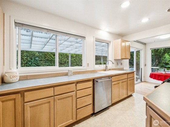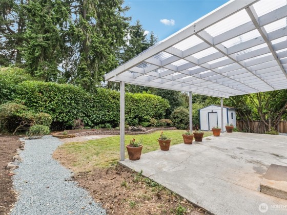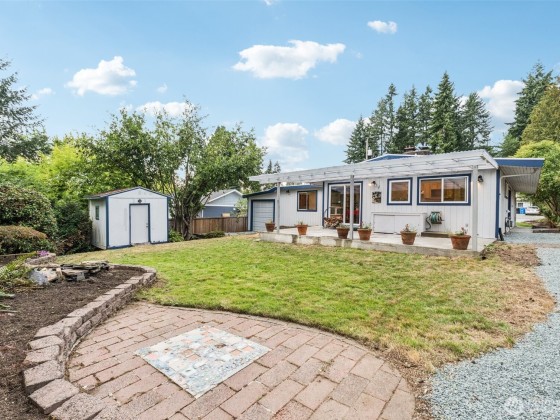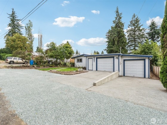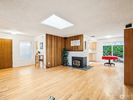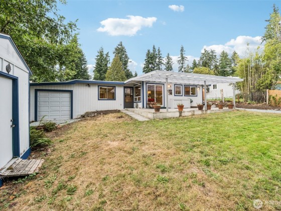 New price! Hurry before this one is gone. Welcome to this Classic Mid-Century Charmer. One level living with hardwood floors thru out, (new carpet in the family rm). Lots of natural light. Formal living space with wood insert fireplace. Huge family room. 3 bedrooms, 2 baths. 3rd bedroom was used as an office/library. Gas heat, H20 & cooktop/stove. Lovely backyard with covered patio, water feature and refreshed landscaping. Oversized single car garage + 3 car garage with tall ceilings perfect for the car enthusiast, hobbies, workshop or contractor supply storage? The possibilities are endless. New roof in July 2025. Great commuter location nearby I-5, bus service and the new Light Rail.