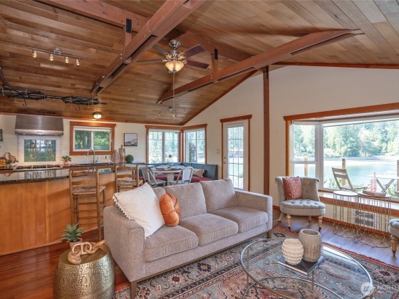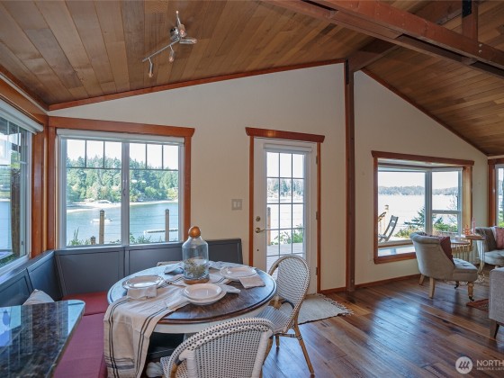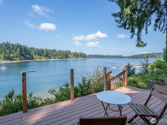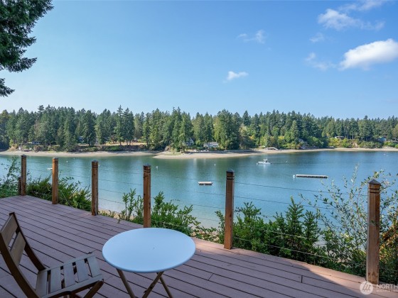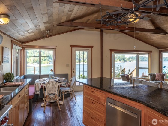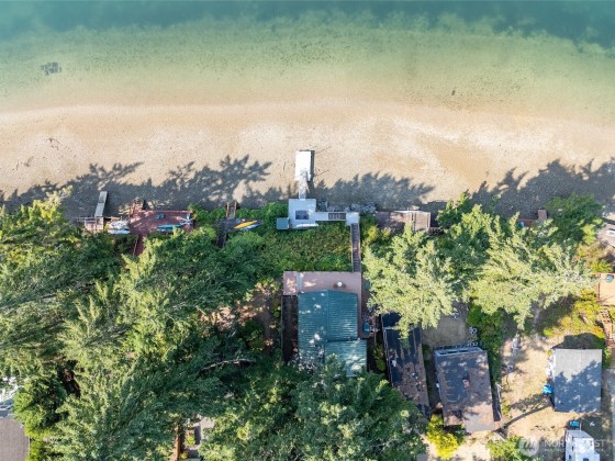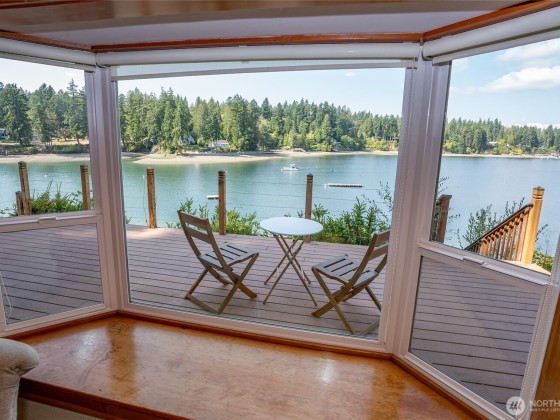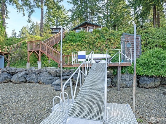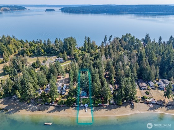 Lovely Waterfront Cabin Boasts 50' of pristine Puget Sound shoreline and TWO DOCKS. This home blends rustic elegance with thoughtful updates, featuring classic vaulted wood beam ceilings, wood-wrapped windows. Sweeping sound views from the custom kitchen with hand-crafted cabinetry, Wolf range, built-in banquet seating, butler’s pantry, Sunroom with skylights add warmth and functionality. The spacious great room flows seamlessly to the Trex deck, outdoor sauna tub, & steps leading to a private dock, floating dock, and deep protected moorage, perfect for boating enthusiasts. Garage Features ADU including loft & 3/4 bath. Serene getaway offers timeless PNW Waterfront backdrop. Buyer withdrew due to financial reasons; no inspection completed.