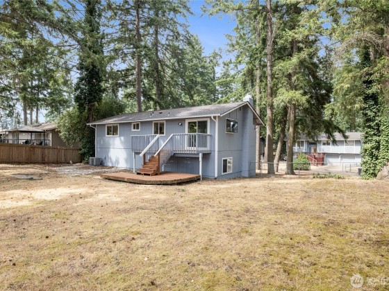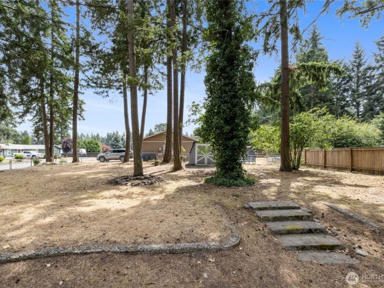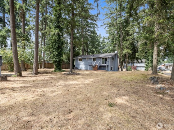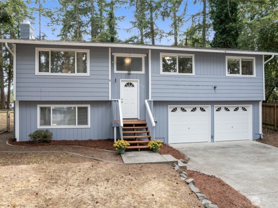 As you step inside this tastefully “down to the studs” remodeled "Fredrickson" home you'll be swooned by the attractive finishes throughout + a NEW ROOF, NEW HEAT PUMP, H20 HEATER & FRESH EXTERIOR PAINT! On the upper level this "almost new" abode features an all NEW kitchen w/SS APPLIANCES & adjoining eating area, the primary bedroom w/ adjoining continental full/main bath, 2 add’l bedrooms + living room with a cozy fireplace. On the lower level you’ll find a spacious family room with a 2nd fireplace, LVP flooring plus a ¾ bathroom/utility room combo w/custom tile shower & access to the 2 car garage. The ¼ acre corner lot offers a huge fenced backyard with plenty of room to roam complete w/ a deck & garden shed! Easy access to JBLM!