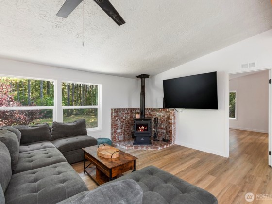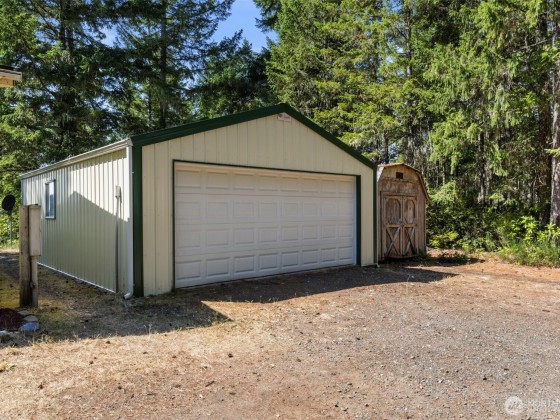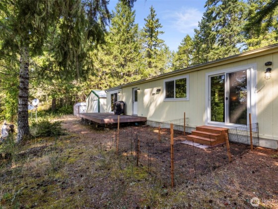Welcome to your serene escape in Seabeck. Nestled on a private, 4.55-acre wooded parcel, this beautifully renovated 3-bed, 2-bath home is move-in ready! Features a dream kitchen with huge island, quartz counters, custom cabinets, SS appliances, and double oven. Newer roof, energy efficient windows, sliding glass doors, flooring, plumbing, paint, and w/d. Ductless mini-split and a wood stove. Spacious primary suite has a spa-like bath with soaking tub and a walk-in closet. Second bedroom opens to deck with mountain views. Open-concept layout flows through living, dining and kitchen. Plenty of room in the front yard to create your garden. Expansive garage/shop ideal for your projects. Space for your RV. Schedule your tour today!