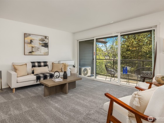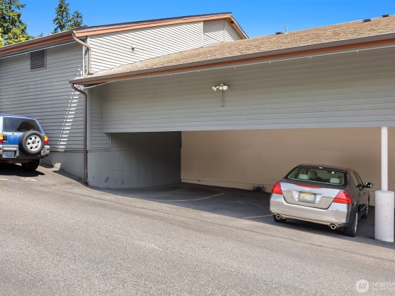 Coveted top-floor living at Echo Cove—complete with own in-unit all-in-one washer & dryer! Skip the shared laundry room just easy, private convenience right at home. This top-floor unit offers maximum privacy & great territorial views. Light-filled interiors stay cool w/ AC unit, while brand NEW carpet, fresh paint, & updated vinyl flooring make it fully turnkey. Spacious bedroom w/ double windows & closet w/ built-ins to keep everything tidy. Kitchen offers modern two-tone cabinetry, newer dishwasher, & instant hot water faucet for ease. Storage unit on the same floor for extra space. Enjoy a dedicated carport space, plus unbeatable access to lake life, HWY 99, Costco, bus lines and I-5. The perfect blend of comfort, convenience & location