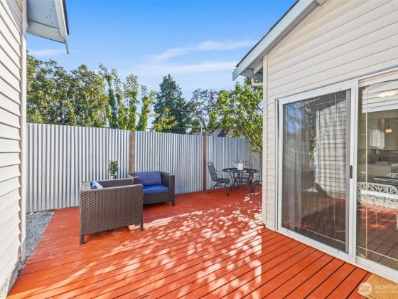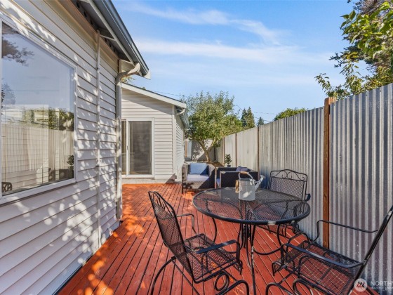 Charming 3 bedroom, 2 bathroom home awaits you on a sunny lot! The home welcomes you with a cozy wood burning fireplace and hardwood floors that lead into the updated kitchen and sun-filled dining room. The adjoining MIL/ADU offers the perfect multigenerational living setup or rental income potential, or use it as one seamless flowing home with room for everyone. Outside, enjoy versatile deck and patio spaces for al fresco dining, BBQ, fire pit and gardening, complete with apple, cherry, and fig trees in the fully fenced yard. Alley access offers an easy future off-street parking option. Minutes to the Light Rail, Green Lake, and so much more. LR2 zoning offers excellent investor options.