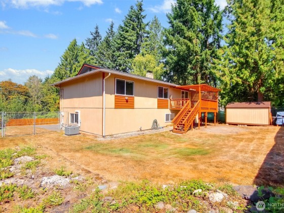 Beautifully updated 4-bedroom, 2.5-bath gem offers 2,435 sq ft of comfortable living on a spacious .330-acre lot with no HOA!! Same owners since 2001! Fully remodeled kitchen with all new S/S appliances included. Both upstairs baths updated, new manufactured hardwood floors, carpet, fresh paint, baseboards, new roof, electrical panel, outlets, switches, and garage doors with dual openers. New fencing, rebuilt decks, privacy screen, septic system, waterline, heater, AC heat pump, shed stays. Popcorn ceilings removed (no asbestos). Bonus room plumbed, 2 efficient wood fireplaces, wood stays! Close to Meridian Ave, you’ll love the easy access to shopping, dining, schools, and commuter routes. A rare find with so much to offer, don’t miss it!!!