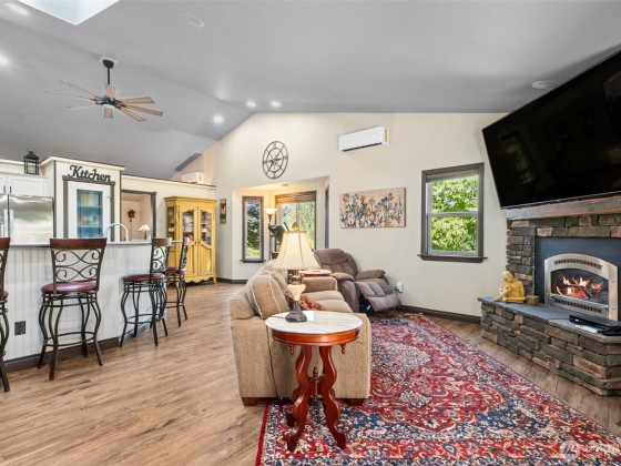 SELLER OFFERING $8,500 CLOSING COSTS! This beautifully updated, Open Concept, 1 story home for easy living with 3 beds/2 full baths & $80K + in Seller updates incl NEWER furnace, windows, appliances (incl washer/dryer), Quartz counters, painted cabinetry, 2 Mini-Splits, en-suite tub, recessed lighting, Ext Paint, fencing & more! Tasteful architectural details in the cathedral ceilings, wood wrap windows, skylights, wainscoting, vinyl wood flooring, pantry, walk in closet, gas fireplace & a lovely covered deck for year round outdoor living. Garage mezzanine & shed provide extra storage space. Great proximity to the nearby future development, Lakepoint Urban Village, and all the shopping & restaurants in Covington and Maple Valley. Must See!