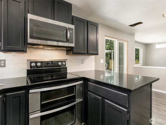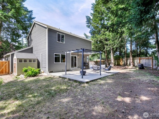 Discover this comfortably updated Elk Run home, nestled on a quiet cul-de-sac. Featuring a modern kitchen with stainless steel appliances, ductless AC, and energy-efficient vinyl windows, this home is move-in ready. Cozy up by the real wood fireplace or entertain on the expansive patio in the private backyard with a gazebo. The spacious primary suite boasts an en-suite bathroom and walk-in closet. A large garage with ample storage completes this gem. Perfectly located for commuters and served by top-rated Tahoma schools, this home is a must-see!