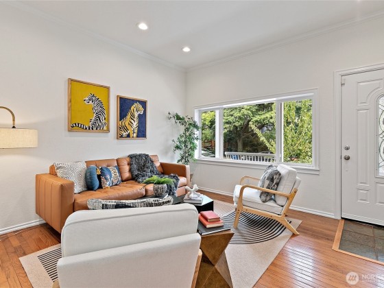 A classic Seattle craftsman with a spacious layout and dreamy front porch! Thoughtful updates include new kitchen appliances, carpet, and bathroom and light fixtures—truly turn-key. High ceilings and abundant windows flood the main floor with light. The bedroom off the kitchen makes a perfect dining nook, home office, or play space. Upstairs you’ll find two large bedrooms and two baths, with one bedroom easily functioning as two! Enjoy 3 dedicated parking spaces, an attached carport, fully fenced backyard, basement storage, and an unbeatable location close to coffee, groceries, restaurants, parks, and shops. Excellent freeway access for weekday (or weekend) commutes. Pre-inspected and ready for you!