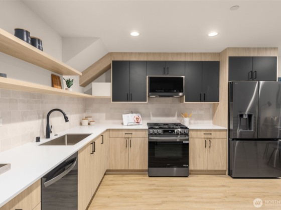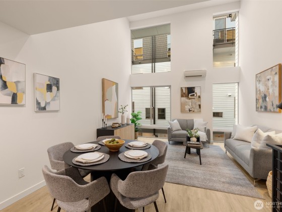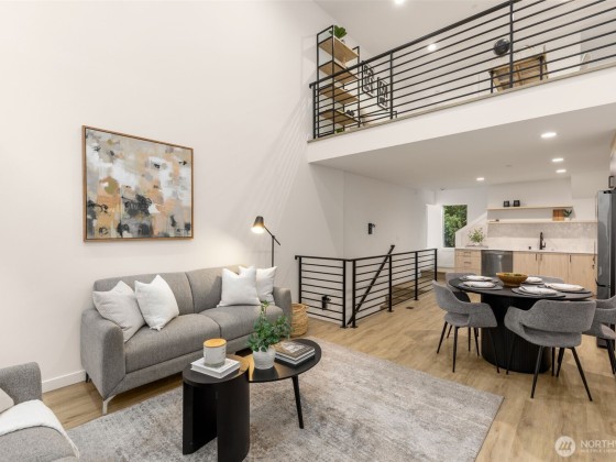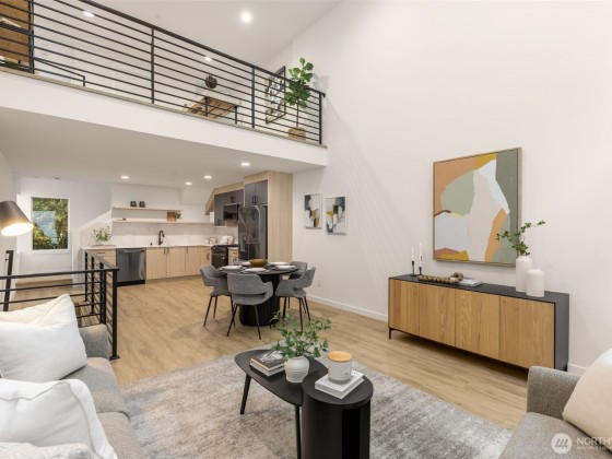 Arlo in Wallingford by Greencity Homes offers you both savings + location in this move-in ready, modern & cool 2-bed+large flex space home,. This home boasts a soaring double-height ceiling with expansive windows to let in all of that natural light, a gas stove and hookup that is very rare to find in new construction, a powder bath for guests, hard floors throughout, an airy and huge flex space, and a private primary suite w/ walk-in closet, all finished with a sunny roof deck showcasing city, lake & Mt. Rainier views! Fun awaits with a 94 Walk Score leading to an assortment of inviting eateries, activities & transportation seconds away, with easy access to the U District, Fremont, Green Lake, Woodland Park, I-5 and the rest of the city.