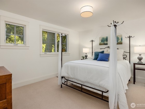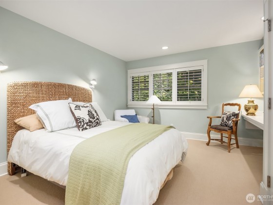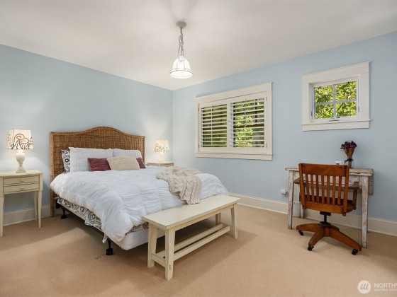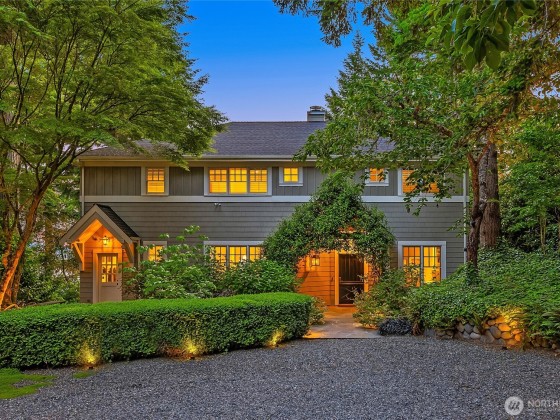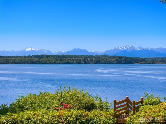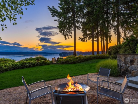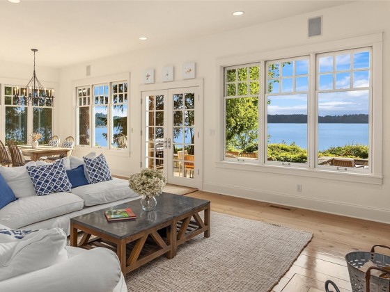 Manzanita’s Coastal Estate ~ Located in Bainbridge’s most prized west-facing waterfront neighborhood, the residence captures sweeping views of Puget Sound, the Olympic Mountains & sunsets ablaze with color. Custom built by Smallwood Construction, the home is a study in East Coast elegance blended with Northwest ease - classic lines, sunlit interiors & timeless details balanced by a relaxed coastal style. The traditional floorplan spans nearly 5,800 sqft, including a 1-bedroom 909 sqft guest suite. Set on an exceptionally rare 2.37 level acres, the property unfolds with a tree-lined drive & an expansive sunny front lawn with fruit trees. The waterside yard features stairs to 79 ft of private beach, a deck atop the bulkhead & a mooring buoy.