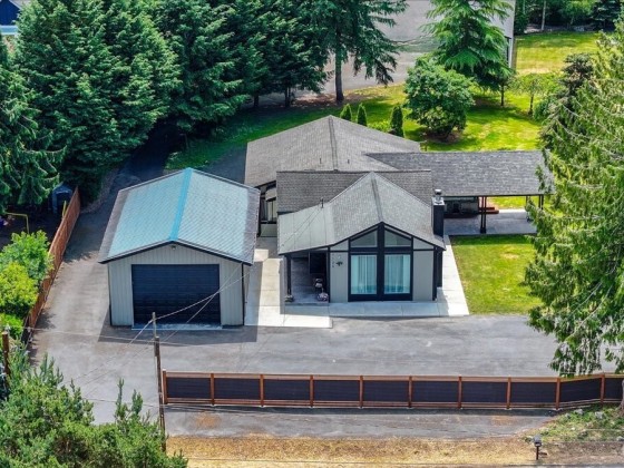 Welcome to your dream home! Set on nearly an acre of beautifully landscaped grounds, this fully remodeled gem offers over 1,700 sqft of thoughtfully designed living space inside and out, no detail has been overlooked. Soaring vaulted ceilings, expansive windows, and an open concept layout create a bright, airy feel that lives even larger. Step outside to your covered patio complete with built- in appliances, perfect for entertaining or relaxing in comfort year round. The detached garage, original to the property, is fully finished and includes a spacious loft, ideal for guests, a home office, or extra storage. Additionally, the rear shop was professionally installed by the current owners. Please refer to agent remarks for further details.