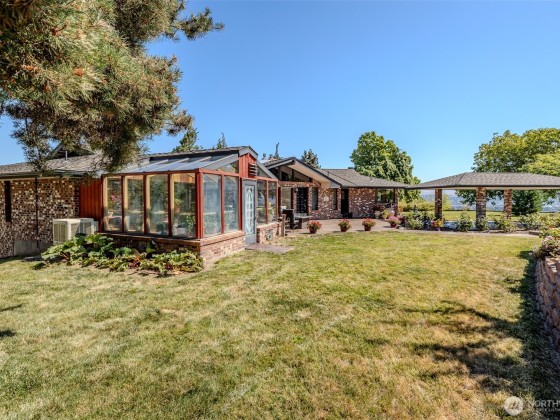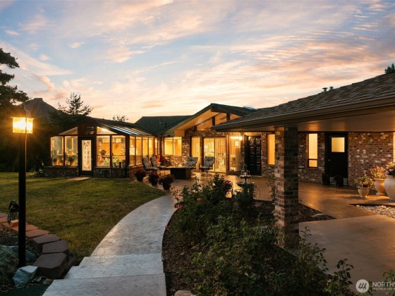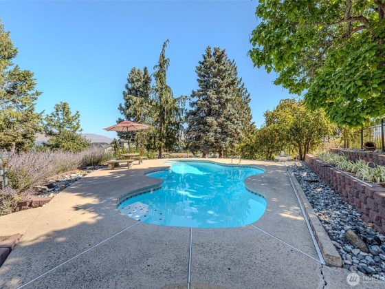 Elevated living at this private estate perched in Wenatchee’s sought-after Skyline neighborhood. This timeless home offers 3,539 sqft of resort style living with 3 bedrooms, including a luxurious primary with direct access to the stunning greenhouse and a main-level junior suite. All 3.5 bathrooms have been beautifully remodeled. A finished lower level with built in sauna invites a focus on wellness. Walls of windows and mature landscaping frame panoramic views, and a grand two-story fireplace anchors the two living rooms. Outside, enjoy a sparkling pool with three in-water seats, a large fully fenced garden, chicken coop, & 4-car garage. 6 almond trees, a walnut tree, and other varieties add charm & edible abundance for homestead living.