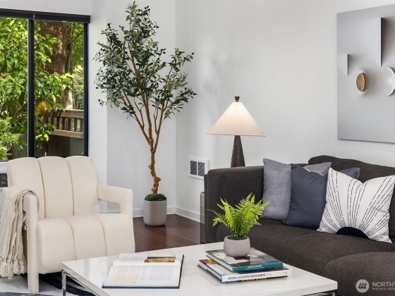 Lifestyle, location and exceptional value! Beautifully designed townhome just minutes from Bellevue Square, Main St shops & dining and top parks. Plus outstanding value w/$20k buyer credit, no rental cap & ultra-low HOA dues-ideal for homeowners and investors. Technically a 2-bedroom, yet the top floor loft serves as a 3rd bedroom w/two closets, home office & fitness area. Enter townhome through a peaceful garden patio into an open Living & Dining Room. Bright Kitchen features SS & eating bar. Relax on private back deck ideal for container gardening & BBQs. Second level offers a primary suite w/remodeled bathroom, second bedroom & updated full bath. Dedicated parking stall in secure garage + an additional owner parking lot. Welcome Home!