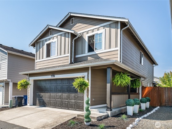 Welcome to Fox Run at The Meadows where country-chic meets city convenience! Warm, light-filled, move-in ready. Open-concept main w/hardwoods, granite, wood accents & tons of natural light. Country kitchen w/pantry + breakfast bar flows to dining area & covered patio for year-round BBQs or quiet coffee. Upstairs: 3 generous BRs + flexible family rm primary suite w/vaulted ceiling, WIC, private full bath. Everyday ease: covered front porch, covered back walkway, 2-car garage + off-street parking, fully landscaped low-maint yard. All appliances stay: fridge, range/oven, microwave, DW, washer, dryer. Sought-after neighborhood w/athletic court, playground, open fields. Min to Marysville shopping, dining, schools, Navy Commissary & I-5!