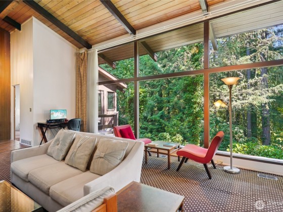 Discover two iconic single-family homes on a lush, private 1.4+ acre wooded lot, both thoughtfully designed by renowned UW architects Lionel “Spike” Pries and Bob Shields. Featuring soaring 16' vaulted ceilings, three bedrooms, and a stunning pool, these residences offer an extraordinary mix of classic design and modern living. With plenty of space, they’re ideal for first-time buyers or savvy investors with potential to add additional homes. Conveniently located near major employers, schools, and amenities, this unique property is truly a must-see opportunity.