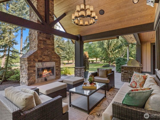 Coveted blend of privacy, craftsmanship, and lifestyle, gated luxury home opens to 4.7-acre estate with open-concept chef’s kitchen with polished granite countertops, artisan-crafted floors, cabinetry, custom millwork. Light-filled great room w/panoramic golf course views, w/floor-to-ceiling windows. Outdoor living pavilion w/ built-in Viking BBQ, dual fireplace, and heater for year-round entertaining. Two spacious primary suites w/walk-in closets, theater room, two bonus rooms, executive office, whole-home sound system. Heated travertine floors! Pickleball court, No HOA. Quick access to Eastside tech hubs, Woodinville, and hwys. Spacious 4-car garage, outbuilding, Room for RV, DADU/shop potential - buyer to verify. Lush forest views!